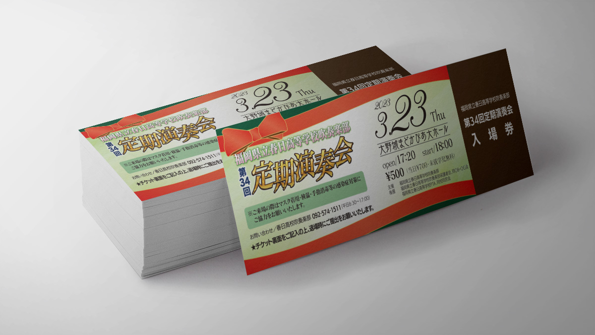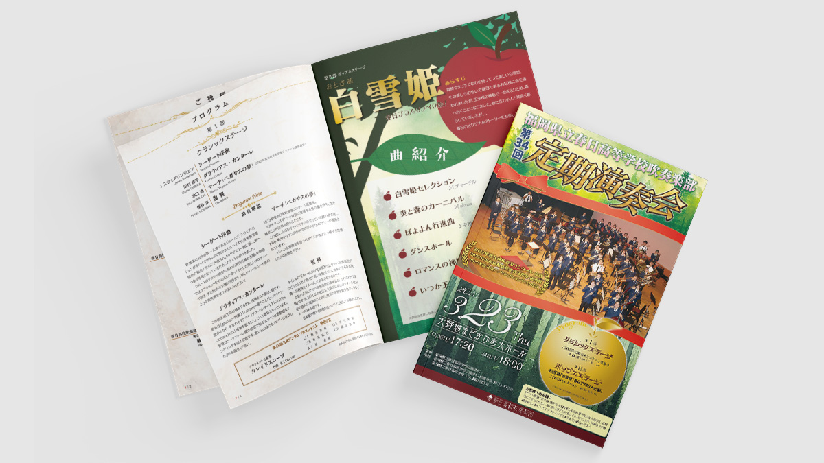 - 福岡県立春日高等学校吹奏楽部「第34回定期演奏会」ポスター・チラシ・チケット・パンフレット制作、演奏会映像撮影