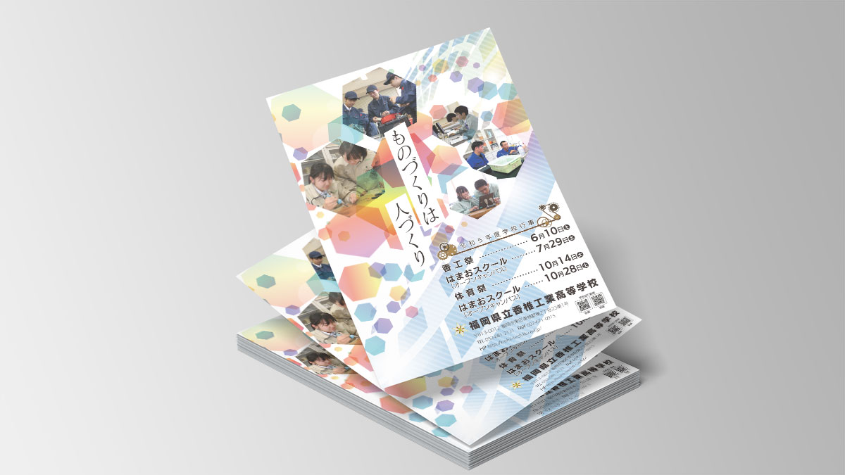 香椎工業高校ポスター制作 2023年 2023.07.14 PEOJECT 福岡県立香椎工業高等学校「令和5年度学校案内」ポスター制作 DATE 2023.07.14 PLACE 福岡県立香椎工業高等学校 CLIENT 福岡県立香椎工業高等学校 ORDER ポスター制作、チラシ制作、写真撮影 NOTE 福岡県立香椎工業高等学校の「令和5年度学校案内」のポスターを制作しました。ポスターに使用する一部の写真を撮影しました。 SPEC ポスター A3サイズ 片面4色 コート135kg チラシ A4サイズ 片面4色 コート90kg LINK ポスター制作 学校広報用写真撮影 制作実績